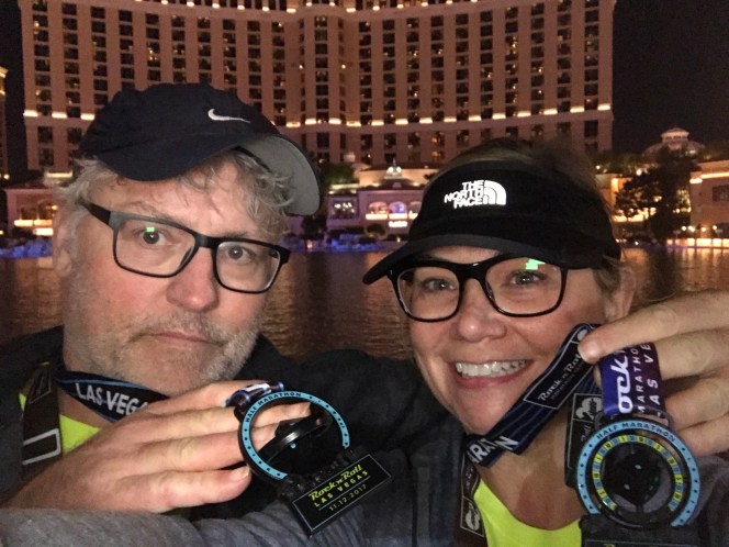 We started out strong and enjoying seeing The Strip lit up and being on the road. However, about two miles in my body tightened unlike any run or race. My back and lower body seized up. No matter how I stretched or adjusted, I could not find relief. My dream of running was over. I was going to have to walk most of this course. It was extremely disappointing.
